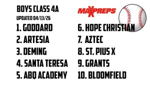 Select LATEST MAXPREPS BASEBALL & SOFTBALL POLLS APRIL 13 By Tyler Dunkel Posted April 14, 2026 In General News, Press Releases Select LATEST MAXPREPS BASEBALL & SOFTBALL POLLS APRIL 132026-04-142026-04-14https://www.nmact.org/wp-content/uploads/2017/06/nmaa-logo-full.pngNMAAhttps://www.nmact.org/wp-content/uploads/2024/04/maxpreps-baseball-and-softball.jpg200px200px TweetPinShare0 Shares Tyler Dunkel Recent PostsSIGNING DAY CENTRAL (APRIL 2026)BLOOMFIELD STUDENT WINS NATIONAL SECTION 6 HONORMARILYN SEPULVEDA MEET OF CHAMPIONS HIGHLIGHTS & RESULTSMonday Morning News